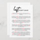Mit der Modern Verlassen Right Brautparty Game Card können Sie Ihr Brautparty mit Spannung und Lachen ausstatten. Dieses beliebte Spiel ist ein sicheres Mittel, um Ihre Gäste bei der Feier Ihrer kommenden Nuptials behalten. Machen Sie sich bereit, Geschenke verlassen und direkt, während Sie folgen zusammen mit einer spannenden Geschichte. Während der Gastgeber die Geschichte laut liest, hören die Gäste eifrig nach Hinweisen, um ihre Geschenke in die angegebene Richtung zu geben. Es ist ein lustiger und interaktiver Weg, um alle einzubinden und bleibende Erinnerungen zu schaffen. Diese Spielkarte mit modernem und elegantem minimalistischem Design ergänzt jedes Brautparty perfekt. Das gepflegte und stilvolle Ambiente verleiht der Veranstaltungsdekoration eine Touch von Eleganz. Das links oder rechte Brautparty ist eine klassische Tradition, aber diese moderne Drehung bringt es ins 21. Jahrhundert. Egal, ob Sie die demnächst erscheinende Frau, eine Brautjungfrau oder eine Freundin sind, die ein Brautparty plant, dieses Spiel ist eine Must-have-Ergänzung zu Ihrer Feier. Es ist auch für andere Gelegenheiten wie Babyduschen geeignet. So sammeln Sie Ihre Lieben und bereiten sich auf einen Nachmittag des Lachen und freundlichen Wettbewerb vor. Machen Sie Ihr Brautparty unvergesslich mit der Modern Verlassen Right Brautparty Game Card. Bestellen Sie jetzt und lass den Spaß beginnen!