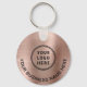 Moderner, einfacher Schlüsselanhänger für Ihr Unternehmen oder Ihre Organisation mit einer gebürsteten Rose Gold Imitate Metall Hintergrund. Fügen Sie Ihr Logo und QR-Code und eine Zeile mit individuellem Text auf jeder Seite, wie z.B. Ihr Firmenname, Slogan, danke, etc.