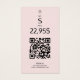 Moderne Logo Blush-Pink QR-Code-Kleidungsanhänger. Dieses minimalistische moderne Blush-Pink-Kleidungsanhänger-Merkmal verfügt über ein einfaches und sauberes Design mit QR-Code und Ihrem eigenen benutzerdefinierten Firmenlogo. Das Design verwendet einen klassischen Blush-Pink-Farbton mit klarem Text und einem ordentlichen Layout, wodurch Ihr Logo hervorsticht. Es ist perfekt für Modeunternehmen, die ein professionelles, stilvolles und leicht lesbares Etikett mit minimalen Details wünschen. Ideal für Boutiquen, Kleinunternehmen oder moderne Modeunternehmen.