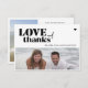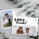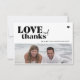 Liebe und dank lässigen lustigen lustigen alten Typografie moderne schlichte minimalistische Schwarz-Weiß Hochzeit danke Karte mit 2 Fotos, Herz, und Text Vorlage.