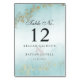 Moderne Luxe Gold Flecks Aquamarine Nebelhochzeit Tischnummer
