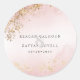 Moderne Luxe Gold Flecks Blush Pink Mist Classic Round Sticker Hochzeit. Elegante moderne Hochzeitsaufkleber in einem ombre blush rosa Marmornebel mit luxuriösen goldenen Flecken. Dieses maßgeschneiderte, traumhafte Hochzeitsdesign kann leicht mit Ihren eigenen Hochzeitsdetails personalisiert werden.