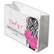 Stellen Sie dar, dass Ihrer Anerkennung zu Ihrer neuen Schwiegermutter oder andere Hochzeitsbegleiter mit diesem Ihnen Gastgeschenk Hochzeitsgeschenktasche danken. Vervollkommnen Sie, um mit einem speziellen Geschenk oder Geschenken zu füllen, zum Ihrer Anerkennung zu zeigen. Moderner moderner luxe Schwarzweiss-Entwurf mit einem mutigen Spritzen der Pinkgartennelken. Bringt modernes luxe Gartennelkenhochzeits-Set zusammen. Fertigen Sie besonders an,/personifizieren Sie diese Geschenkbevorzugungstaschen mit Ihren Begleitern Titel, Name und eine persönliche Mitteilung oder Dank. Liest z.Z. danken Ihnen Mutter des Bräutigams Jennifer. Einzigartige Kunst und Entwurf durch Sarah Trett.