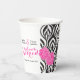 Moderne luxuriöse Schwarz-weiß- & rosa Hochzeit Pappbecher