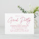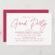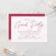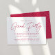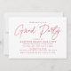 Spaß und moderne Graduiertenparty lädt mit "Grad Party" in einem trendigen Magenta-Skript ein, in dem die Details Ihrer Graduiertenparty unten dargestellt werden. Die einfache Graduierungsparty laden umgekehrt, um ein niedliches magenta und weiß gepunktetes geometrisches Muster anzuzeigen.