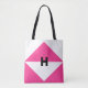 Moderne Magenta und weiße Dreiecke Tote Tasche. H-Brief kann personalisiert sein.