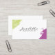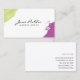 Ein modernes Make-up-Künstler Visitenkarten-Design mit bunten grünen und lila bemalten Ecken. Dieses Design wurde für den Anzug von Unternehmen und in der Schönheitsindustrie tätigen Personen entwickelt, darunter Makeup-Künstler, Kosmetologen, Stylist, Haarstylisten oder Nageltechniker. Das moderne Schminkkünstlerdesign ist zweiseitig und bietet farbenfrohe Ecken mit Ihrem Namen und Jobtitel an der Vorderseite dieser modernen Visitenkarte. Auf der Rückseite sind Ihre Kontaktdaten klar und leicht lesbar. Während diese Vorlage für einen Make-up-Künstler eingerichtet ist, kann sie für andere Geschäftsbereiche leicht personalisiert werden. Schriftart Stil, Größe und Farbe können in den Anpassungsoptionen personalisiert werden. Diese moderne Makeup-Künstler-Visitenkarte wird potenzielle Kunden und Geschäftspartner gleichermaßen begeistern. Der stilvolle Aquarelleffekt in den Ecken macht Design zu einer großartigen Wahl, wenn es darum geht, sich selbst oder Ihr Unternehmen zu vermarkten.