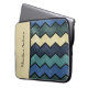 Ein modernes, männlich blaues Zickzack Muster in Elfenbeintönen und Blau in einem steingekalkten Grunge 15" Laptop-Ärmel. Personalisieren Sie diese, indem Sie Ihren Namen hinzufügen. Perfekte Herrenmode für den trendigen und stilvollen Mann.