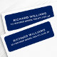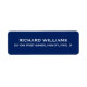 Navy blaue Rücksendeadressen-Aufkleber mit Vorlagenfeldern für Ihren Namen und Ihre Adresse.