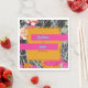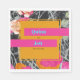 Helles orangefarbenes Quadrat über rosa Orange und pfirsichfarbene moderne Blumen mit dunklem Marmordesign. Namen sind neonblau auf heißen rosa Balken.