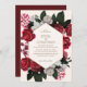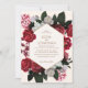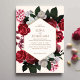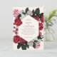 Die Blüteneinladung in Aquarellfarben mit Rose, Blume in rustikalem Maron, Magenta, Elfenbein und Rot mit botanischem Blätter-Muster und einem Minimaltext.. Personalisieren Sie die Einladung mit dem Namen des Empfängers. Die perfekte klassische Blumenhochzeit