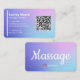 Entdecken Sie moderne Massage Therapist Vorlagen für elegante und berufliche Visitenkarten. Individuelles Design mit Geschäftsinformationen und QR-Code. Wählen Sie aus den Standardoptionen 3.5 x 2.0, gerundete Kanten verfügbar. Ideal für Massagen, Reiki, Reflexologie, Chiropraktik und ganzheitliche Wellness-Praktiker.