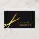 Das ist eine moderne Goldschere Visitenkarte für einen Haarstylisten. Das ist eine moderne elegante Visitenkartenvorlage mit goldenen Schere-Imitaten. Das ist die perfekte Visitenkarte für Haarstylisten, Friseursalons.