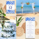 Lassen Sie sich mit einem Programm in mediterraner Eleganz verwöhnen. Moderne Serifen tanzen über das Layout, während Blautöne ein Gefühl zeitloser Eleganz hervorrufen, damit sich die Momente entfalten können.