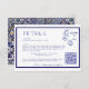 Charmantes mediterranes Fliesendesign auf dieser Details Umschließkarte für eine moderne italienische Hochzeit. Thema: la Dolce Vita, blaue Fliesen, italienisch, Zitronencocktail, mediterrane, Hochzeit in Urlaubsort - Südeuropa.