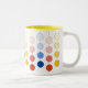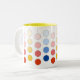 Schöne moderne, farbenfroh-rot-gelbe Hängekreise auf der weißen Tasse Coffee/Tee.