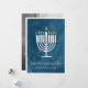 Diese glückliche Chanukka-Karte kennzeichnet modernes und Spaß menorah Illustration steht heraus gegen einen strukturierten Hintergrund auf Blau, das Sie zu JEDER MÖGLICHER FARBE unter Verwendung ändern können "besonders anfertigen es" Knopf! Der Beistand ist mit einem Foto Ihrer Wahl und des kundenspezifischen überlagerten ODER klaren Textes alle Beistandeinzelteile totalpersonalizable, damit eine leere Seite Ihre eigenen handgeschriebenen Mitteilungen anreißt.