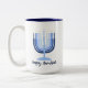 Moderne Design menorah mit "Happy Hanukkah" auf 15oz Tasse. Zweiseitig bedruckt mit rückseitig menorah. Spülmaschinen geeignet.