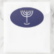 Moderne Menorah White Navy Gold Grafik Ovaler Aufkleber
