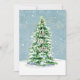 "Moderne, elegante Weihnachten einfache Baumfamilienfotografie-Karte." Elegant in Aquarellfarbe gemalt ein schneebedeckter, beleuchteter Weihnachtsbaum mit goldenen, funkelnden Sternen, die in einem weichen, staubigen blauen Schneehimmel herumwirbeln. Typografisches Textdesign sagt einfach: "Oh, heilige Nacht" und gibt den einfachen Fokus auf den Grund der Saison. Kunstwerk von Audrey Jeanne Roberts, international lizenzierter Künstlerin und Designer, Urheberrecht.