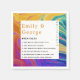 Diese modernen abstrakten Hochzeitsnapkins sind der ideale Set für Ihren großen Tag. Das elegante und stilvolle Design zeichnet sich durch eine schöne Typografie auf einem farbenfrohen, abstrakten Ölgemälde aus. Die Kombination dieser beiden Elemente schafft einen atemberaubenden Effekt, der Ihre Gäste sicher beeindrucken wird. Machen Sie eine Erklärung mit diesen einzigartigen und künstlerischen Hochzeitsnapkins und machen Sie sich bereit, Ihren besonderen Tag zu feiern!