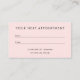 Behalt deine Marke mit dieser eleganten, rosafarbenen Terminkarte, die speziell für Friseure und Schönheitsexperten entworfen wurde. Die Vorderseite zeigt Ihren Namen und Titel in einem sauberen, minimalistischen Stil, während die Rückseite bietet Platz zum Schreiben in den nächsten Termin und Zeit Ihres Kunden. Es gibt auch Platz für Ihre Telefonnummer, Salonadresse und Instagram Handle, um Clients behalten, die mit dem Internet verbunden sind.