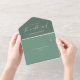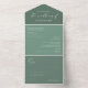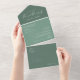 Einfach Siegel und schicken Sie diese Einladungen: Dreifach Hochzeitseinladung mit einer trendigen RSVP-Karte. Dieses trendige Sage Green All In One Wedding Invitation enthält saubere Kalligraphie-Skript, moderne Typografie auf zwei Tönen von Salbei Green. Löschen Sie die Adresse des Empfängers, um das Leerzeichen für Adressaufkleber verlassen. Keine Notwendigkeit, RSVP-Karten oder Gehäuse-Karten zu verschicken - diese Hochzeitseinladung Design deckt alle Ihre Bedürfnisse ab. Editieren Sie einfach den Text nach Ihren Wünschen.