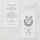 Diese Visitenkarte=Größen Hochzeitskarte bietet eine raffinierte und elegante Art, die Gäste zu informieren und dabei eine geschlossene und romantische Ästhetik zu bewahren. Die Vorderseite weist ein zeitloses Schwarz-Weiß-Design auf, mit einer zarten Taube und einem blumengeschmückten Wappen über den Namen des Ehepaares und dem Hochzeitstag in einer Mischung aus Drehbuch und Serifen-Schriftart. Die Rückseite präsentiert klar strukturierte Informationen über den Empfang, Unterkünfte, UAWG oder andere Details, die minimalistische Typografie verwenden, die den ausgeklügelten Stil ergänzt. Diese Karte eignet sich hervorragend, um in Ihre Hochzeitssuite zu schlüpfen. Sie ist ideal für formelle, rustikale oder klassische Hochzeiten, die stilvolle Einfachheit und nahtlose Koordination suchen.