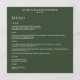 Moderne Minimal dunkle Moos Grüne Hochzeitsempfehl Menükarte