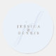 Moderne Minimal Elegant Script Monogram Wedding Classic Round Sticker Fügen Sie eine Touch Eleganz zu Ihrer Hochzeit mit diesen modernen, minimalistischen und eleganten Script Monogram Klassik Rundaufklebern hinzu. Diese Aufkleber sind in klassischen hellblauen und römischen Kaffeefarben gefertigt und eignen sich hervorragend zum Abdichten von Einladungen, Gefälligkeitstaschen oder zum Hinzufügen einer personalisierten Touch zu einem Hochzeitsartikel. Das elegante Skriptmonogramm mit Ihren Initialen oder Namen fügt eine Touch von Eleganz und Romantik hinzu. Diese Aufkleber sind nicht nur schön, sondern auch funktionell, was Ihre Hochzeitsdetails noch attraktiver macht. Diese Aufkleber sind perfekt für eine Vielzahl von Hochzeitsstilen geeignet, von klassisch bis zeitgemäß.