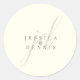 Moderne Minimal Elegant Script Monogram Wedding Classic Round Sticker Fügen Sie eine Touch Eleganz zu Ihrer Hochzeit mit diesen modernen, minimalistischen und eleganten Script Monogram Klassik Rundaufklebern hinzu. Diese Aufkleber sind in klassischen Elfenbein- und Sturmstaubfarben gefertigt und eignen sich hervorragend zum Abdichten von Einladungen, Gefälligkeitssäcken oder zum Hinzufügen einer personalisierten Touch zu einem Hochzeitsartikel. Das elegante Skriptmonogramm mit Ihren Initialen oder Namen fügt eine Touch von Eleganz und Romantik hinzu. Diese Aufkleber sind nicht nur schön, sondern auch funktionell, was Ihre Hochzeitsdetails noch attraktiver macht. Diese Aufkleber sind perfekt für eine Vielzahl von Hochzeitsstilen geeignet, von klassisch bis zeitgemäß.