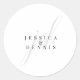 Moderner Minimal Elegant Script Monogram Wedding Classic Round Sticker Fügen Sie Ihren Gastgeschenke Hochzeiten, Geschenken oder Einladungen mit diesen klassischen Rundaufklebern eine Touch Eleganz hinzu. Diese Aufkleber mit modernem, minimalistischem Design und elegantem Skriptmonogramm sind die perfekte Möglichkeit, Ihre Hochzeitsdetails zu personalisieren. Passen Sie diese Aufkleber mit Ihren Namen und Initialen an, um eine wirklich einzigartige und unvergessliche Touch zu schaffen. Ideal zum Versiegeln von Umschlägen, zum Dekorieren von Geschenktaschen oder zum Hinzufügen einer Touch zu Ihren Gastgeschenke Hochzeiten.