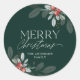Dieser runde Weihnachtsaufkleber mit elegantem Wintergrün und Beeren auf dunkelgrünem Hintergrund. Das Design wird durch den angesagten handgeschriebenen Stil "Frohe Weihnachten" betont, der eine Touch von Eleganz bietet.