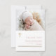 Moderne Minimal Gold Cross Foto Taufe Dankeskarte