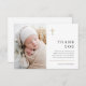 Moderne Minimal Gold Cross Taufe Vielen Dank Karte mit einfacher Typografie und Foto. Klicken Sie auf die Schaltfläche Bearbeiten, um dieses Design mit Ihren Details anzupassen.