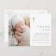Moderne Minimal Gold Cross Taufe Vielen Dank Karte mit einfacher Typografie und Foto. Klicken Sie auf die Schaltfläche Bearbeiten, um dieses Design mit Ihren Details anzupassen.