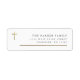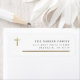 Moderne Minimal Gold Cross Taufe Rücksendeadressen-Aufkleber mit einfacher Typografie. Klicken Sie auf die Schaltfläche Bearbeiten, um dieses Design mit Ihren Details anzupassen.