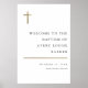 Moderne Minimal Gold Cross Taufe Begrüßungszeichen mit einfacher Typografie. Klicken Sie auf die Schaltfläche Bearbeiten, um dieses Design mit Ihren Details anzupassen.