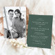 Mit dieser vielseitigen Hochzeitseinladung mit fett weißer Schrift, subtilen Kalligraphie-Akzenten und einem dunkelgrünen Hintergrund können Sie sich ein Bild machen. Das minimalistische Ambiente verbindet klassische Eleganz mit moderner Touch und ist sowohl für feierliche als auch für lässige Hochzeiten konzipiert. Die Rückseite hebt das Foto der senkrechten Verlobung hervor und fügt Ihrer besonderen Ankündigung ein persönliches und unvergessliches Detail hinzu. Diese Einladung, die Ihren einzigartigen Stil widerspiegelt, präsentiert Ihre Hochzeitsdetails mit zeitloser Eleganz und schlichtem Charme.