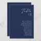 Moderne Minimal Navy Blue Silver Tischnummer Chart