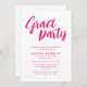 Dieses einladende Design strahlt Eleganz und Einfachheit mit einer modernen minimalen Ästhetik aus. Die Farbpalette ist streng rosa und weiß, wodurch ein schlichtes, zeitloses Aussehen gewährleistet wird. Die Wörter "Grad Party" stehen im Mittelpunkt der Bühne, geschrieben in einem auffälligen Pinselskript, das dem Layout eine spielerische, schicke Touch verleiht. Darunter zeigen saubere, serifenlose Schriftart anmutig die Veranstaltungsdetails in strukturierter und organisierter Weise an.