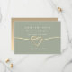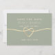 Moderne, elegante und minimale Weise grüne Hochzeit retten die Datumsinvestition mit einfacher handgeschriebener Schrift und goldenem Seilherz.