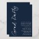 Moderne Minimal Script Blue Silver Graduation Part Folieneinladung