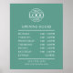 Dieses maßgeschneiderte Plakat mit elegantem minimalistischem Design in Modern Aquamarin Green ist perfekt für kleine Unternehmen geeignet. Personalisieren Sie es mit Ihrem Text, um Ihre Betriebszeiten klar darzustellen. Ideal für Corporate Branding und Werbezwecke, stellen Sie sicher, dass Ihre Kunden immer wissen, wann Sie geöffnet sind!