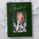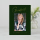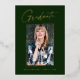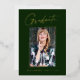 Saubere, trendige, moderne und elegante "Foto"-Abschluss-Ankündigung Goldfolienkarten (Ihre Wahl von Silber oder Rose-Folie), mit Designelementen moderner Texte mit einem einzigartigen kalligraphischen Tintenskript. Das Foto des Absolventen auf der Vorderseite der Karte ist mit einem delikaten & minimalistischen partiellen Reiter akzentuiert. Die Kartenrückseite bietet personalisierte Textstellen für Informationen über Ihren Abschluss oder können gelöscht werden, wenn Sie eine Nachricht übergeben möchten. Smaragdgrün mit Goldfolie oder einfach anpassen Sie den Hintergrund, um die Grundfarbe Ihrer Schule oder eine beliebige Farbe Ihrer Wahl. Perfekt für die Gymnasialstufe, die Uni und den Hochschulstudiengang.