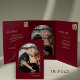 Minimal elegante Bogen Form Foto burgundy Overlay Hochzeitsbudget alle in einer Dreifacheinladung mit 2 QR CODEs zu Website und UAWG in dunkelburgund und und Imitat Gold mit einem modernen stilvollen handgeschriebenen Kalligrafieschrift. +++++ Einfach mit 1 oder 2 Verlobungen Fotos und Ihrem Text personalisieren. +++++ Geeignet für jede Jahreszeit trendige, einfache Hochzeiten.