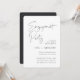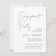 Die Gäste werden eingeladen, das glückliche Paar mit diesen modernen und minimalen Paaren zu feiern, die in klassischem Schwarz und Weiß duschen. Einfache Design-Features "Engagement Party" in lässiger handgeschriebener Schrift, mit Ihren Veranstaltungsdetails rechts unten in modernen Softash schwarzen Buchstaben ausgerichtet.