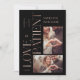 Aktualisieren Sie Ihre Familie und Freunde mit Ihrem neuen Hochzeitstag mit unserer modernen und minimalen schwarzen rett der neuen Datums-Foto-Karte. Das Design verfügt über ein modernes Zwei-Foto-Layout, um Ihre eigenen Fotos zu zeigen. "Liebe ist Patient" wird in einem modernen Imitat Rose Goldfolie Typografie Design mit Namen und einem neuen Hochzeitstermin angezeigt. Die Rückseite ist mit einer einfachen goldenen Rose und einer personalisierten Botschaft auf der Rückseite ausgestattet.