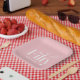 Moderne minimale Typografie, einfach mädchenhaft rosa und weiß 50. Geburtstagsfeier, die Papiertüte schmücken. Teil einer zeitgenössischen Sammlung.