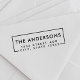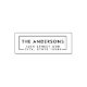 Individuell gestaltete selbstfarbige Rücksendeadresse Briefmarke mit personalisiertem Familiennamen und Adresse in moderner Typografie gerahmt in einem Rechteck. Diese klassische und moderne Briefmarke eignet sich hervorragend für Ankündigungen, Karten, Einladungen, Briefe und vieles mehr.